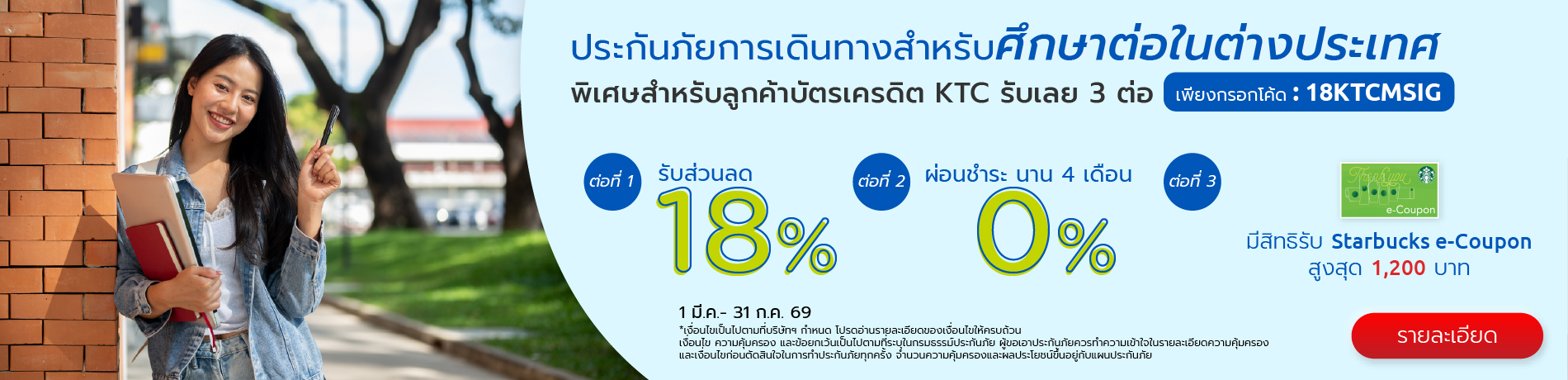 เหมาะสำหรับศึกษาต่อต่างประเทศ คุ้มครองอายุ 13-50 ปี เดินทางสูงสุด 2 ปี