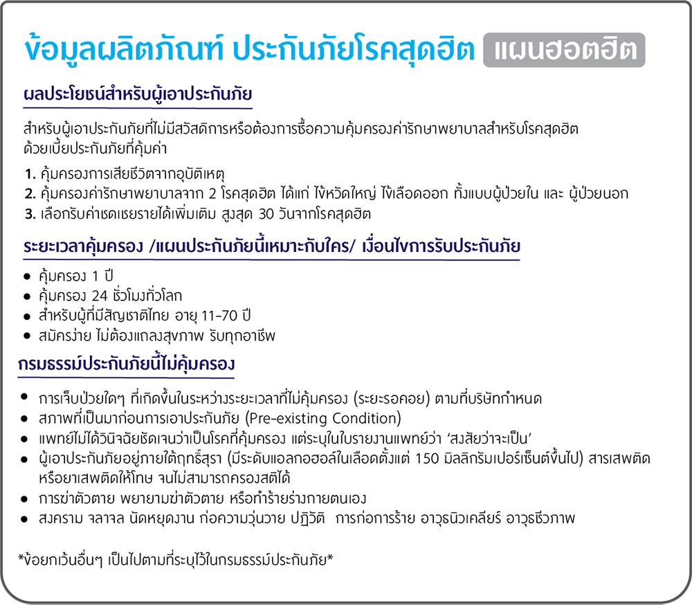 กรมธรรม์ประกันภัยคุ้มครองอุบัติเหตุและการเจ็บป่วยด้วยโรคเฉพาะ (ขายผ่านทางอิเล็กทรอนิกส์ (Online))