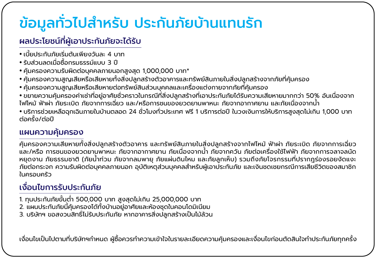 บริษัทฯ ขอสงวนสิทธิ์ในการไม่พิจารณารับประกันภัยทรัพย์สินที่เกิดความเสียหายก่อนการรับประกันภัย